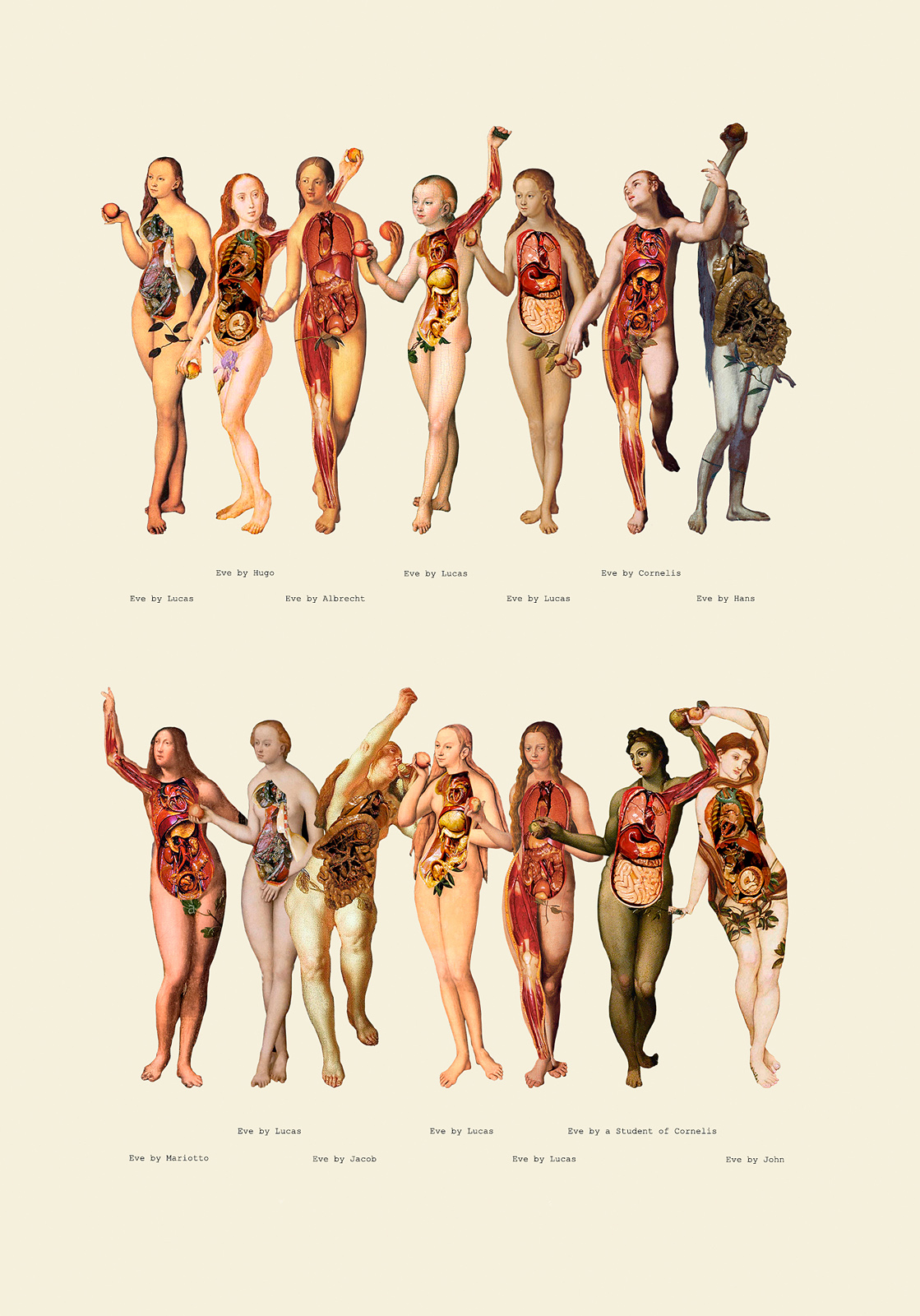 The series is part of an exhibition investigating 18th-century female figures in medical wax models, known as anatomical Venuses. Anatomical Venuses were originally modelled on the Venus figures familiar from nude paintings, and this series playfully creates new anatomical Venuses from various female imagery, including nude paintings and pin-up illustrations. Through digital collages, it examines recurring poses in representations of women that transcend artistic boundaries and enter the realm of science.